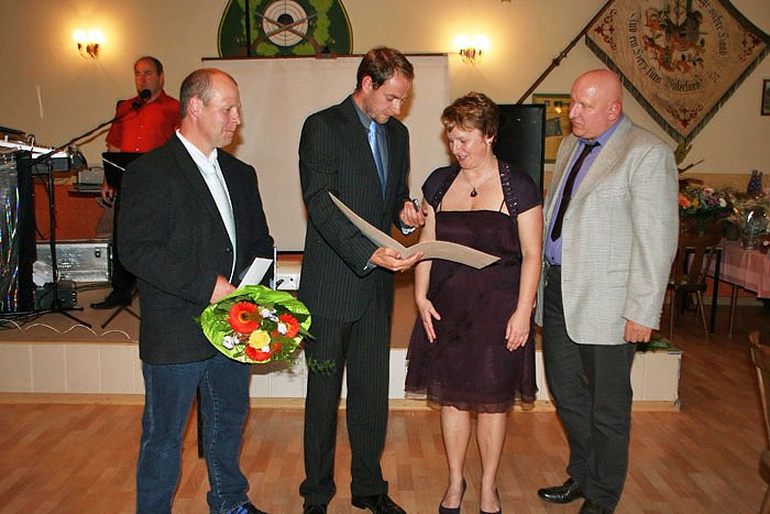 Anlässlich ihrer Silbernen Hochzeit wurde Dagmar Grünert aus Oldisleben mit der Ehrennadel des Kyffhäuser-Kreissportbundes e.V. geehrt. Diese Auszeichnung übernahm der Vorsitzende des VfB Oldisleben e.V. Thomas Röber.