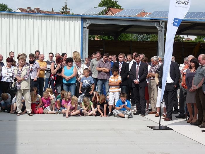Zur feierlichen Einweihung waren zahlreiche Gäste gekommen, die gemeinsam von den beiden Geschäftsführern der Stadtwerke, Hans-Christoph Schmidt und Wilhelm Schreier begrüßt wurden. Auch zahlreiche Kunden der Stadtwerke ließen sich die Gelegenheit nicht entgehen, einen Blick hinter die sonst geschlossenen Türen des neuen BHKW zu werfen. Auch die Schulklasse 2b der Franzbergschule schaute sich die Einweihung an.