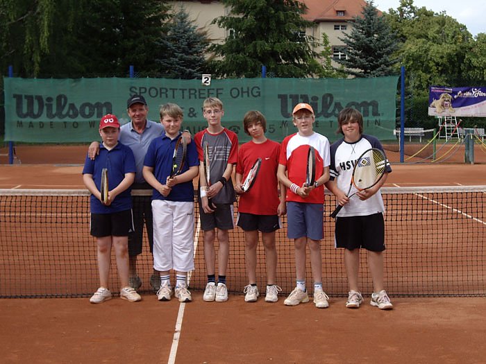 Die jüngsten Akteure, die vereinsseitig an Punktspielen teilnehmen, sicherten sich den Erfolg mit einem 7:1 zu Hause gegen den TC Klosterschule Roßleben und einem 4:4-Unentschieden beim Mitfavoriten vom TC Erfurt93.