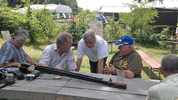 Zu dieser Gelegenheit konnte ein neues Mitglied in die Reihen des Vereins aufgenommen werden, auch wurden weitere Ehrungen an Helfer und Unterstützer des Vereins vergeben. Bei angenehmen 28°C und einer leichten kühlen Briese kam man sich bei kühlen Bier und roter Fassbrause schnell näher und so dauerte es nicht lange, da bildeten sich allerlei Grüppchen, in denen diskutiert und gefachsimpelt wurde. Für die super gute Verpflegung sorgte, wie in den letzten Jahren auch, das Team vom "B 87" Raststättewagen.