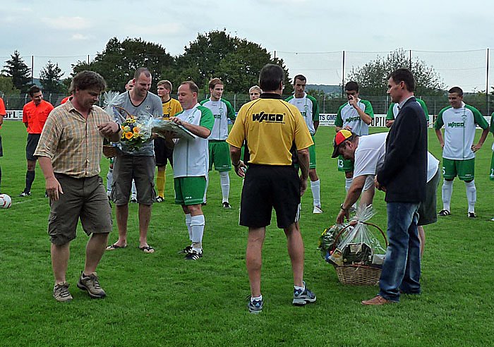 Den zweiten Präsentkorb bekam Daniel Menzel, der feierlich aus der ersten Mannschaft verabschiedet, weil er doch jetzt, nach vielen Verletzungen, nur noch bei den "alten Herren" etwas kicken will.