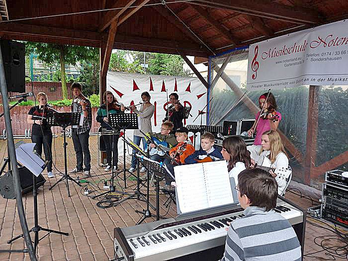 Auch von strömendem Regen ließ man sich beim Sommerfest der Musikschule Notenland in Sondershausen nicht stören...